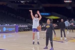 体育资讯10月18日讯 今天,湖人前锋马克西-克莱伯赛前在球馆内进行了三分训练。