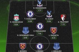 前锋:鲍文(西汉姆,8.40分)、若昂-佩德罗(切尔西,8.20分)、格拉利什(埃弗顿,8.91分)