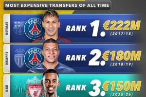 足坛历史最贵TOP10:内姆前二,伊萨克跃居第三!利物浦2人上榜